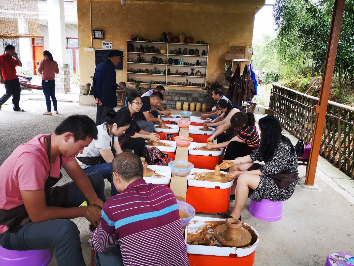 大家紛紛在制陶中加入自己的個性化元素,一個多小時后有十幾個個性化的泥坯成型,再經(jīng)過上色和燒制,一個個帶著感受和回憶的紀念品做成了。